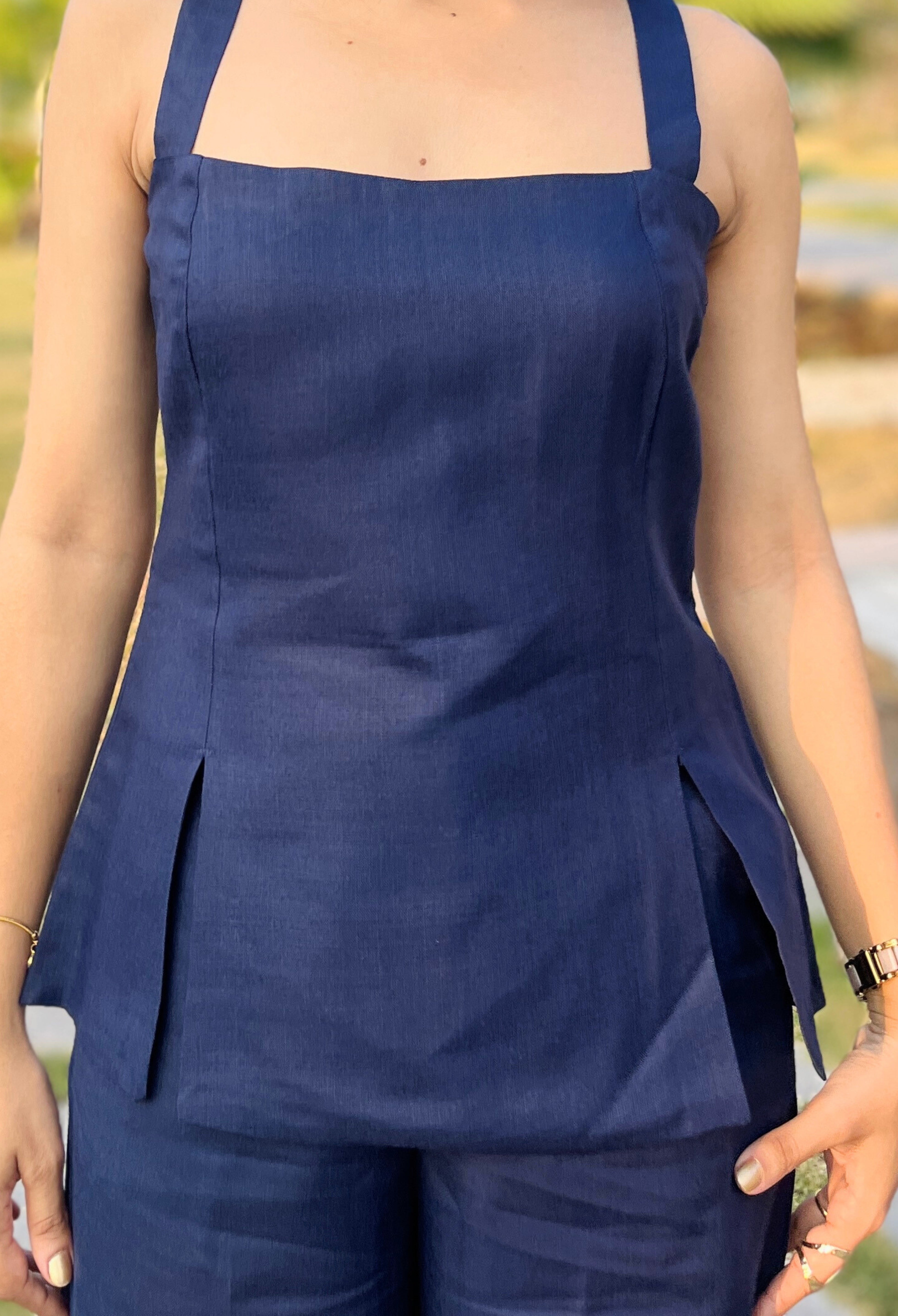 - Top has beautiful front slit and a back zipper.